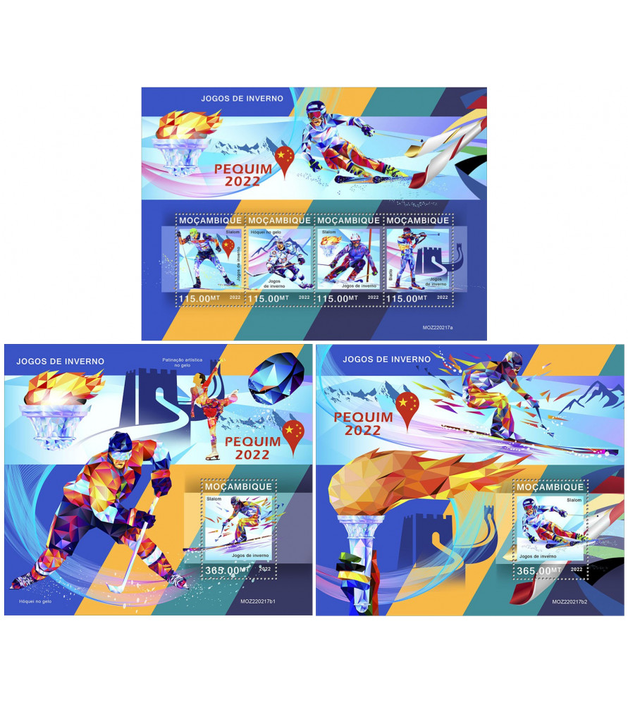 MOSAMBIK - 2022 - Olympische Winterspiele Peking - kleinbogen + 2x block (MZ-22217)