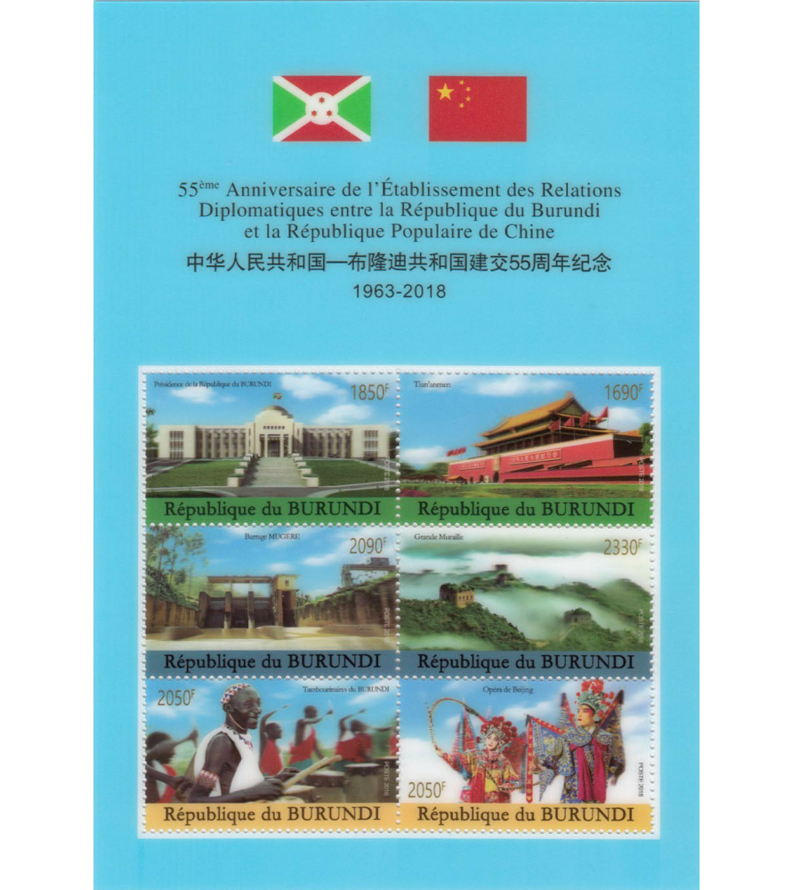 BURUNDI - 2018 - Diplomatische Beziehungen China - Mi 3619/3624 (BL 586) - block (BU-18102a)