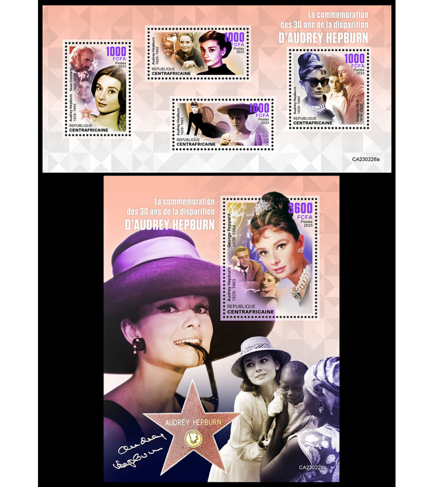 CENTRAL AFRICAN REPUBLIC - 2023 - Audrey Hepburn - minisheet + souvenir sheet (CA-23226)