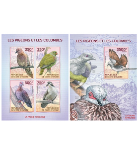 IVORY COAST - 2014 - Pigeons - Mi 1534/1537+BL 195 - minisheet + souvenir sheet (IC-14118)