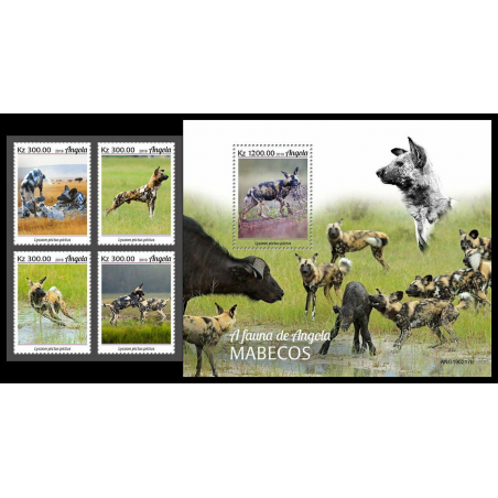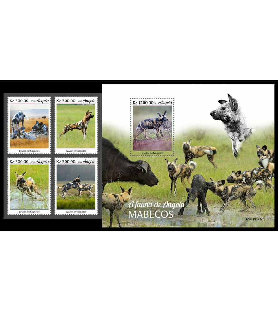 ANGOLA - 2019 - Cape Wild Dogs - set+souvenir sheet (AN-19217)