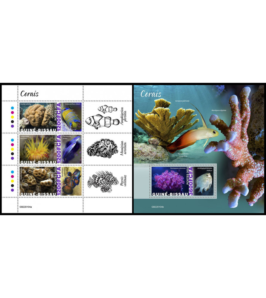 GUINEA-BISSAU - 2022 - Corals - minisheet + souvenir sheet (GB-22104)