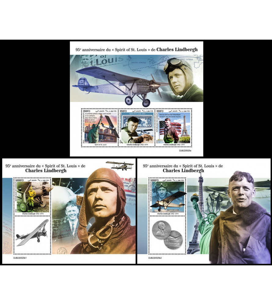 DJIBOUTI - 2022 - Charles Lindbergh - minisheet + 2x souvenir sheet (DJ-22525)