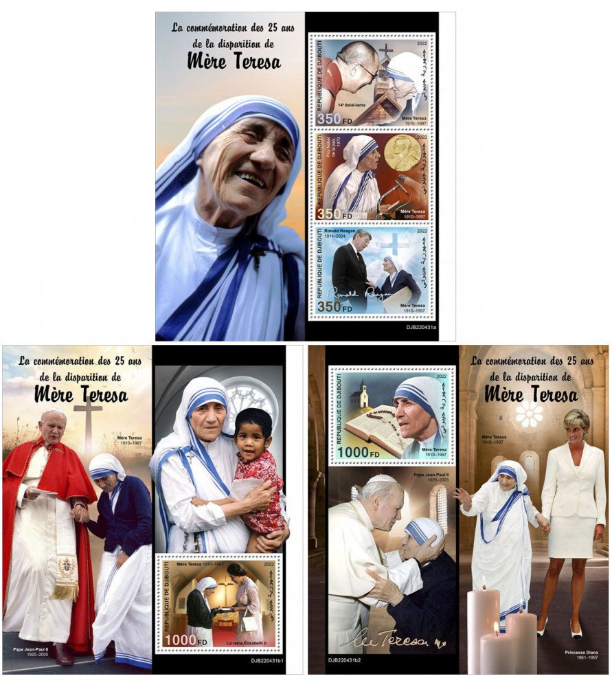 DJIBOUTI - 2022 - Mother Teresa - minisheet + 2x souvenir sheet (DJ-22431)