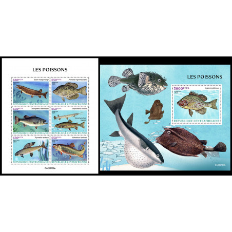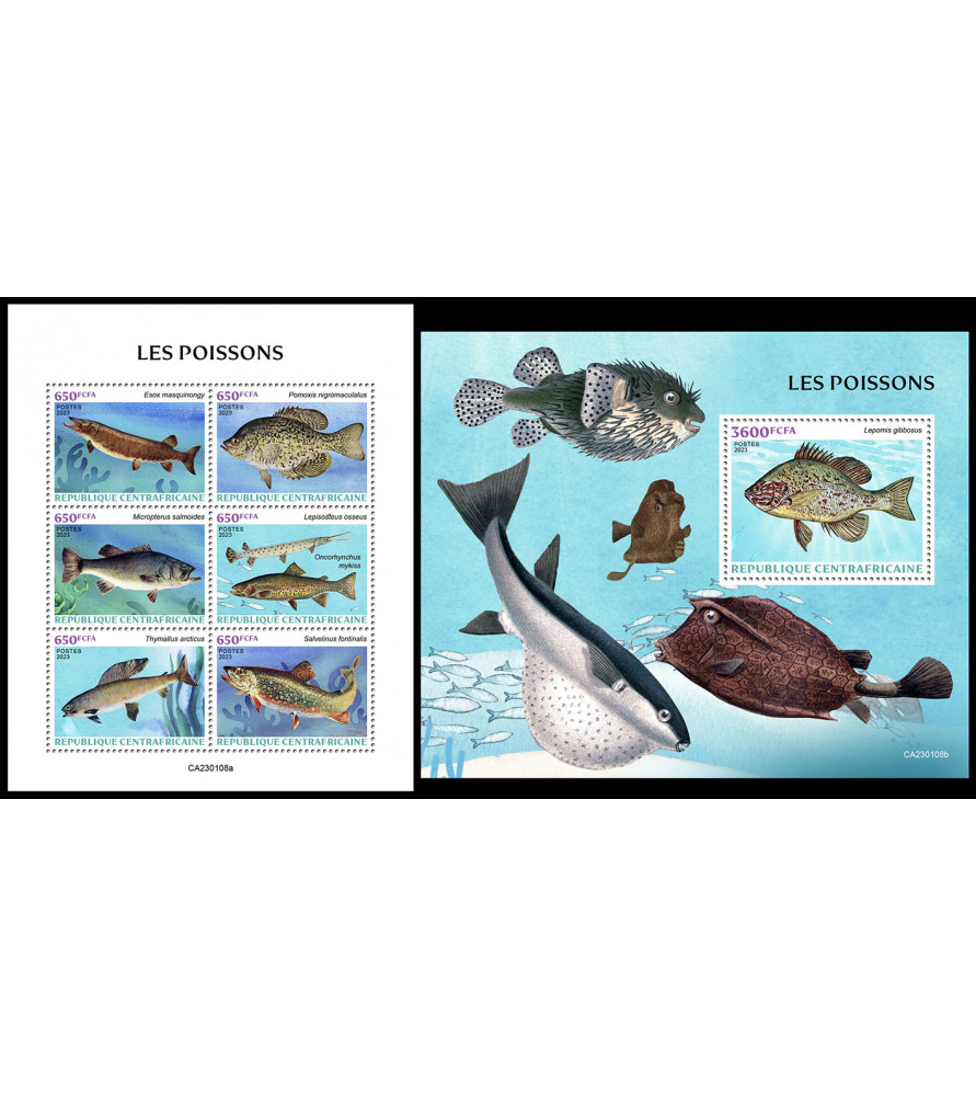 CENTRAL AFRICAN REPUBLIC - 2023 - Fishes - minisheet + souvenir sheet (CA-23108)