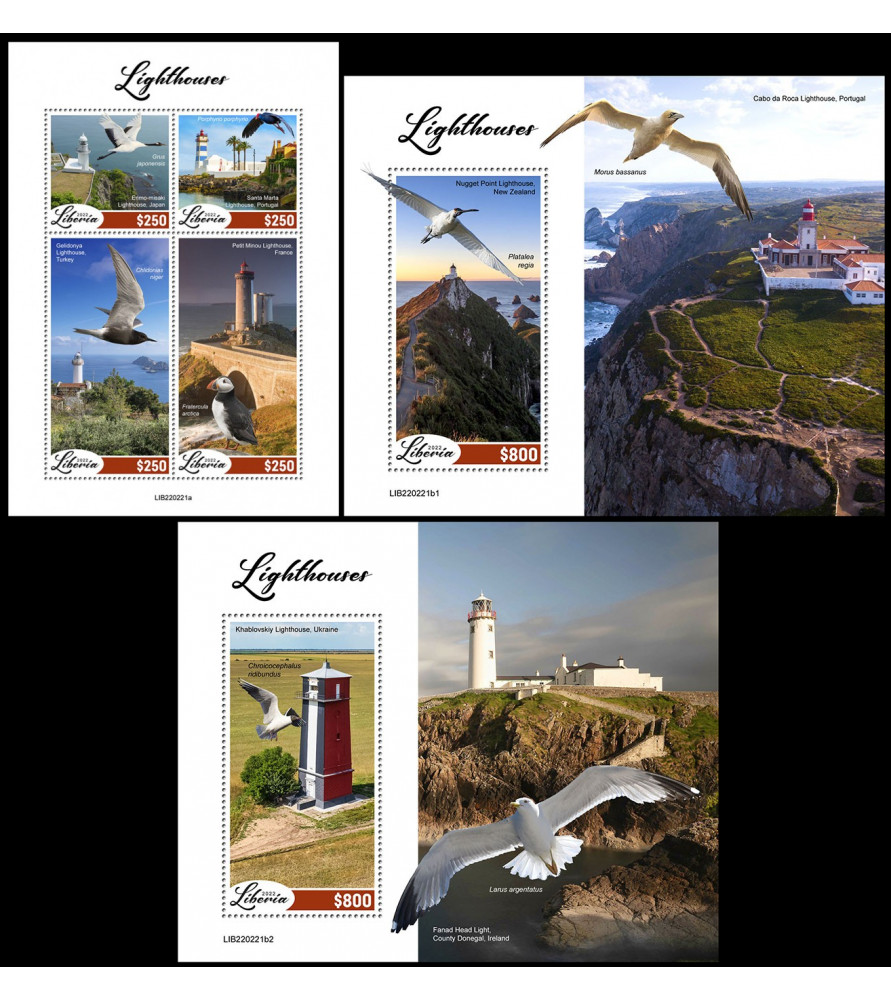LIBERIA - 2022 - Lighthouses - minisheet + 2x souvenir sheet (LR-22221)