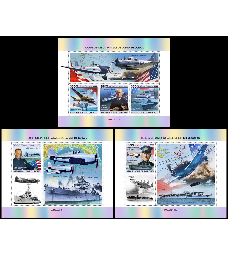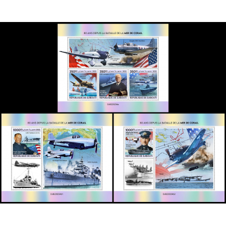 GIBUTI - 2022 - Battaglia del Mar dei Coralli - minifoglio + 2x foglietto (DJ-22234)