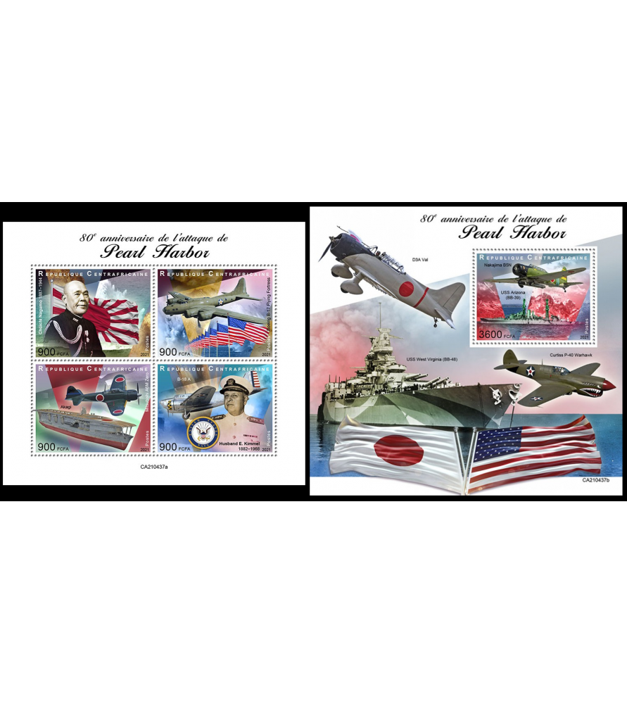 REPUBBLICA CENTRAFRICANA - 2021 - Pearl Harbor - minifoglio + foglietto (CA-21437)