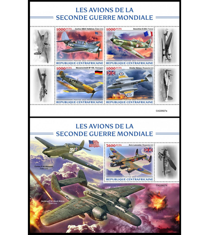 REPUBBLICA CENTRAFRICANA - 2022 - Aerei militari Guerra mondiale - minifoglio + foglietto (CA-22627)