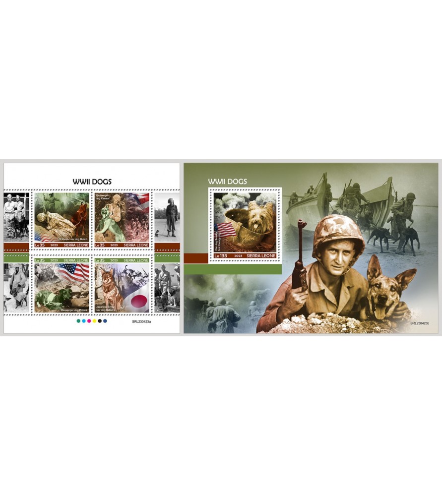 SIERRA LEONE - 2023 - Cani Seconda Guerra Mondiale - minifoglio + foglietto (SL-23423)