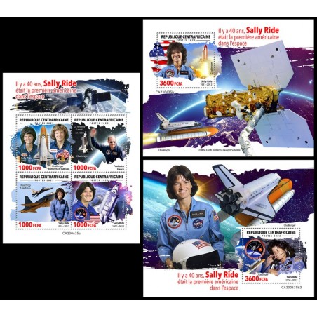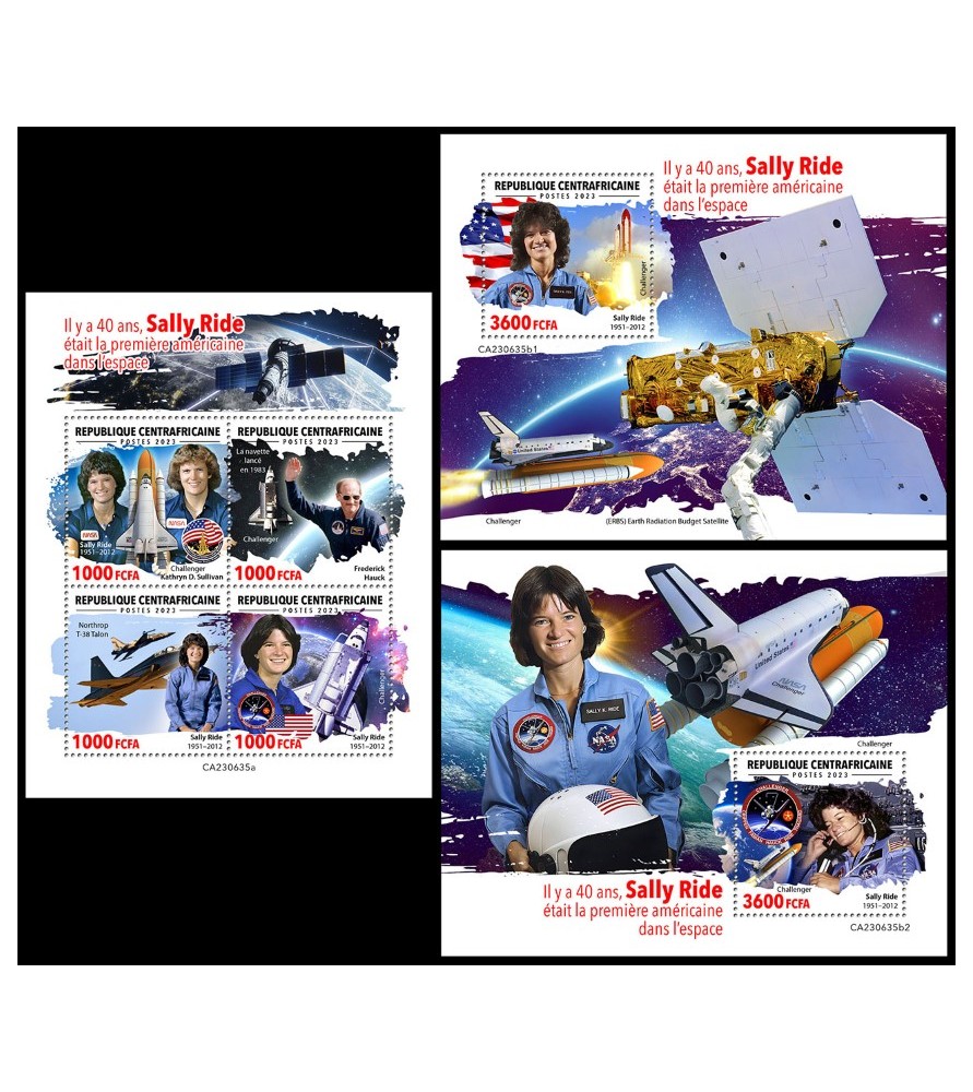 REPUBBLICA CENTRAFRICANA - 2023 - Spazio, Sally Ride - minifoglio + 2x foglietto (CA-23635)