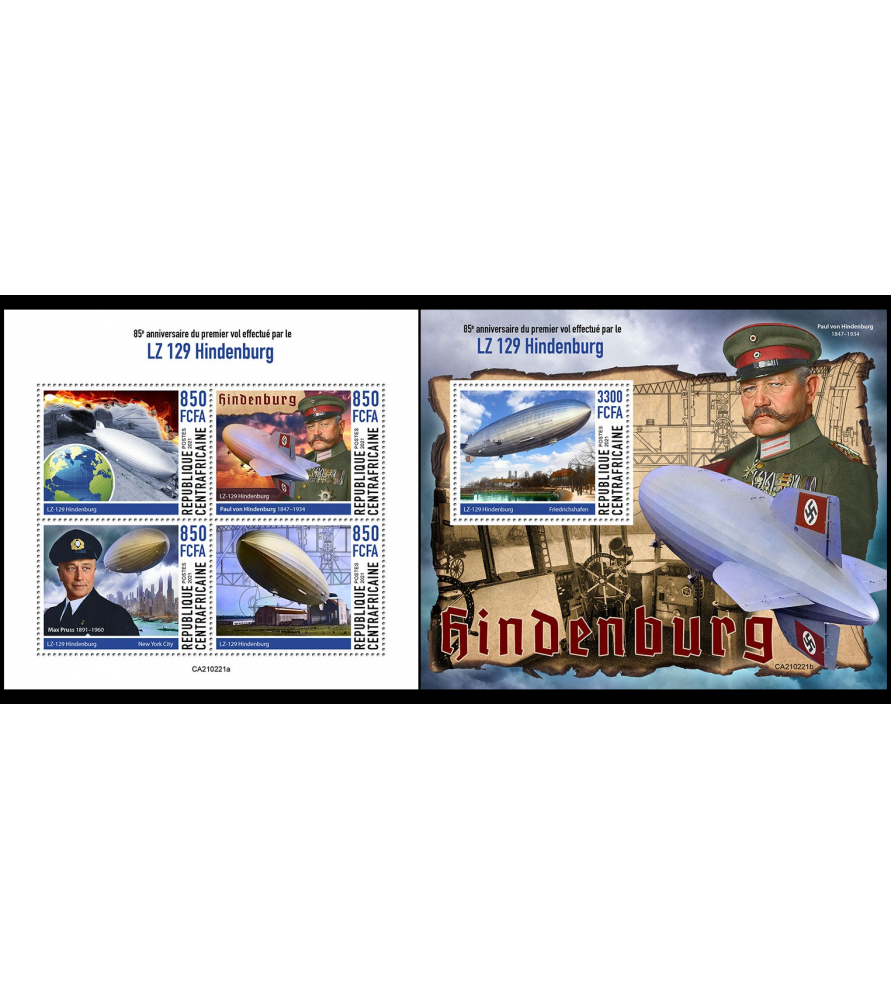 REPUBBLICA CENTRAFRICANA - 2021 - Hindenburg - minifoglio + foglietto (CA-21221)