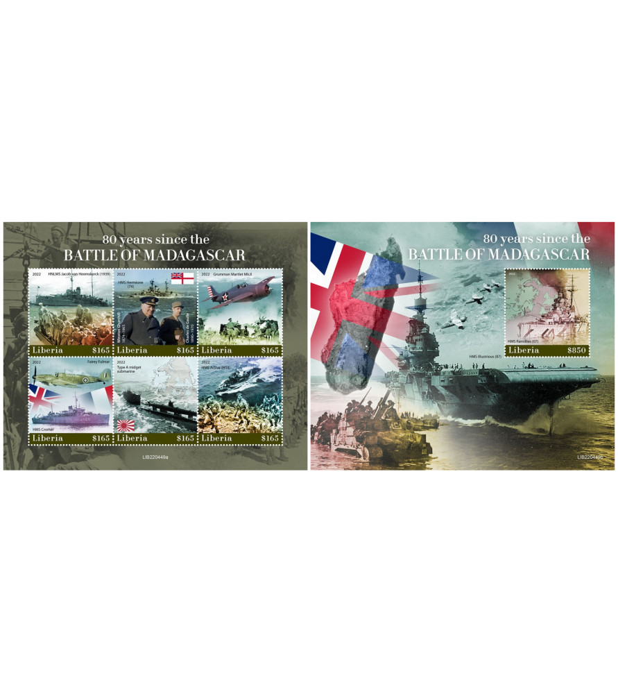 LIBERIA - 2022 - Battaglia di Madagascar - minifoglio + foglietto (LR-22449)
