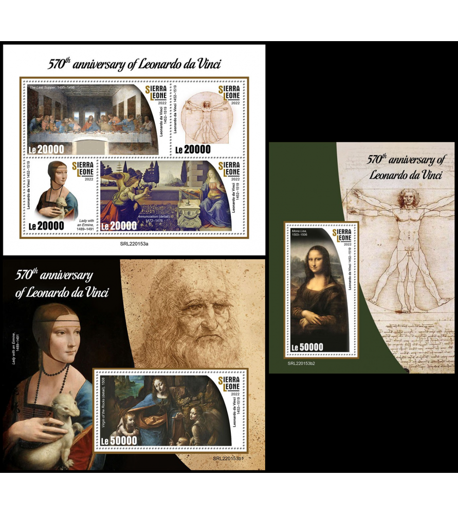 SIERRA LEONE - 2022 - Leonardo da Vinci - minifoglio + 2x foglietto (SL-22153)