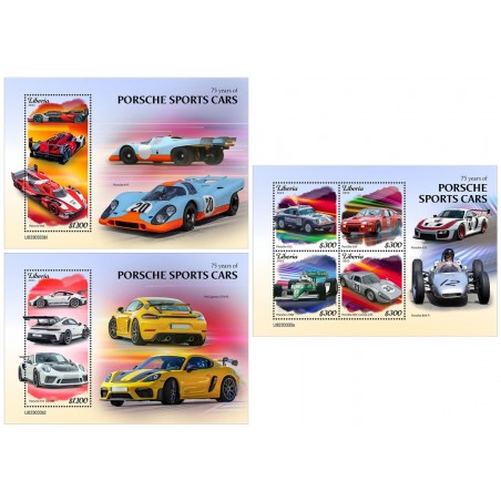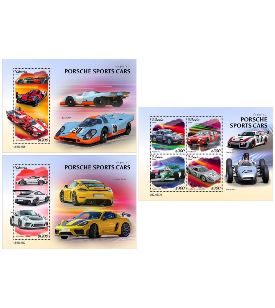 LIBERIA - 2023 - Porsche veicoli sportivi - minifoglio + 2x foglietto (LR-23333)