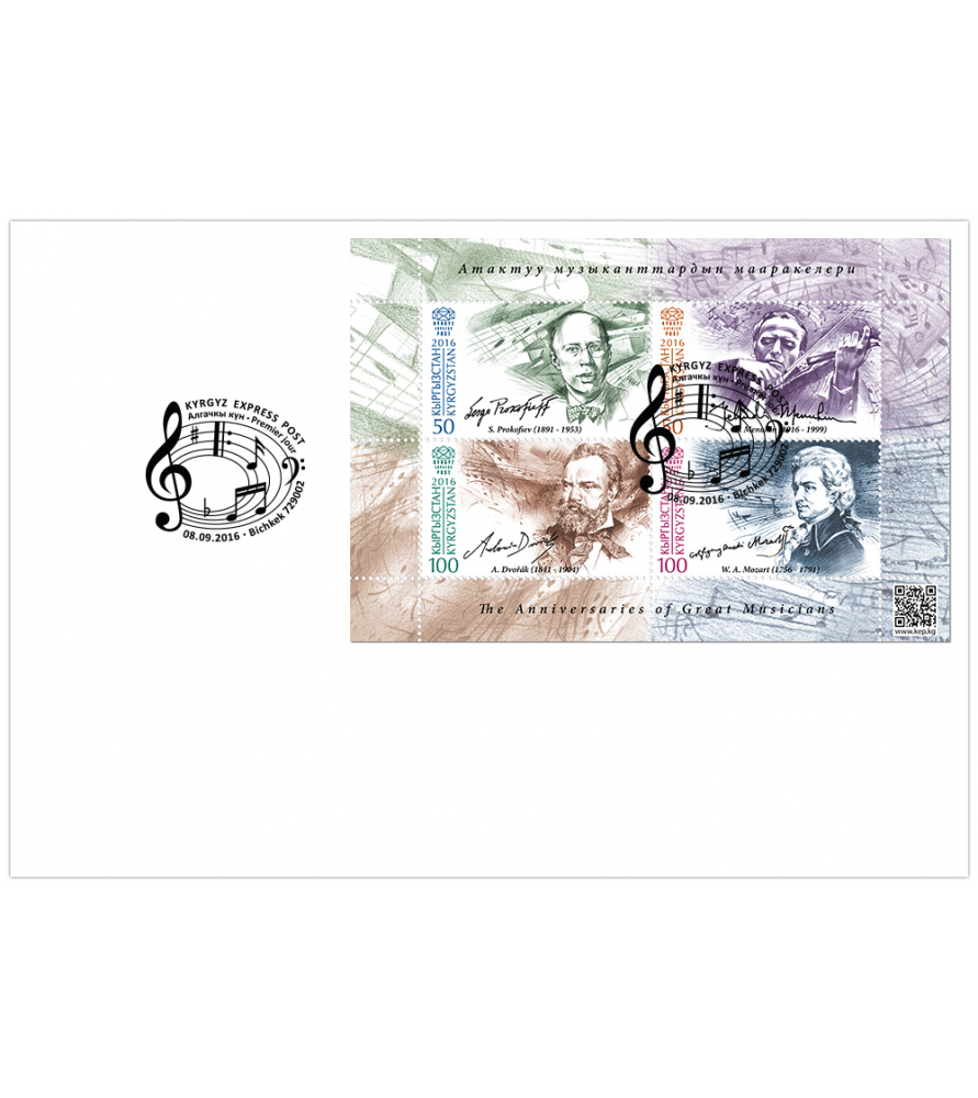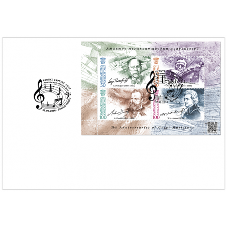 KYRGYZ EXPRESS POST - 2016 - Grande musicisti - Mi 45/48 (BL 13) - foglietto BUSTA PRIMO GIORNO