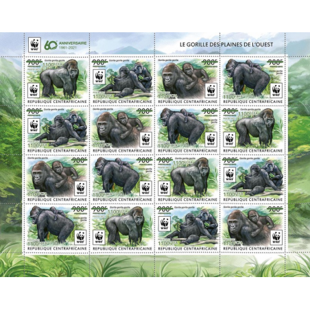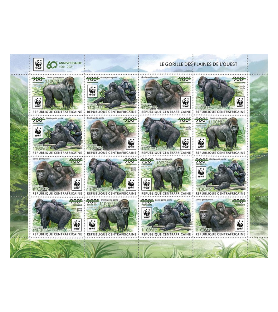 REPUBBLICA CENTRAFRICANA - 2021 - WWF gorilla - foglio - soprastampa verde (CA-21235d2)
