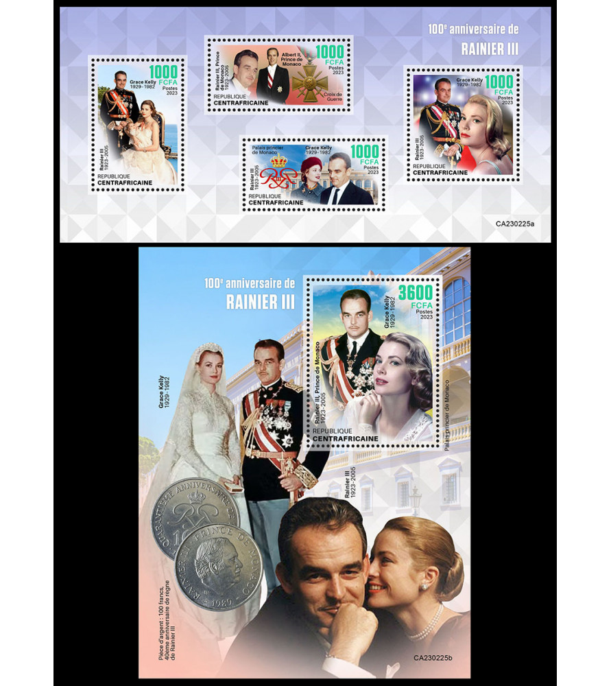 REPUBBLICA CENTRAFRICANA - 2023 - Rainier III - minifoglio + foglietto (CA-23225)
