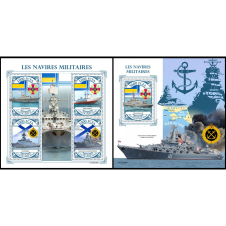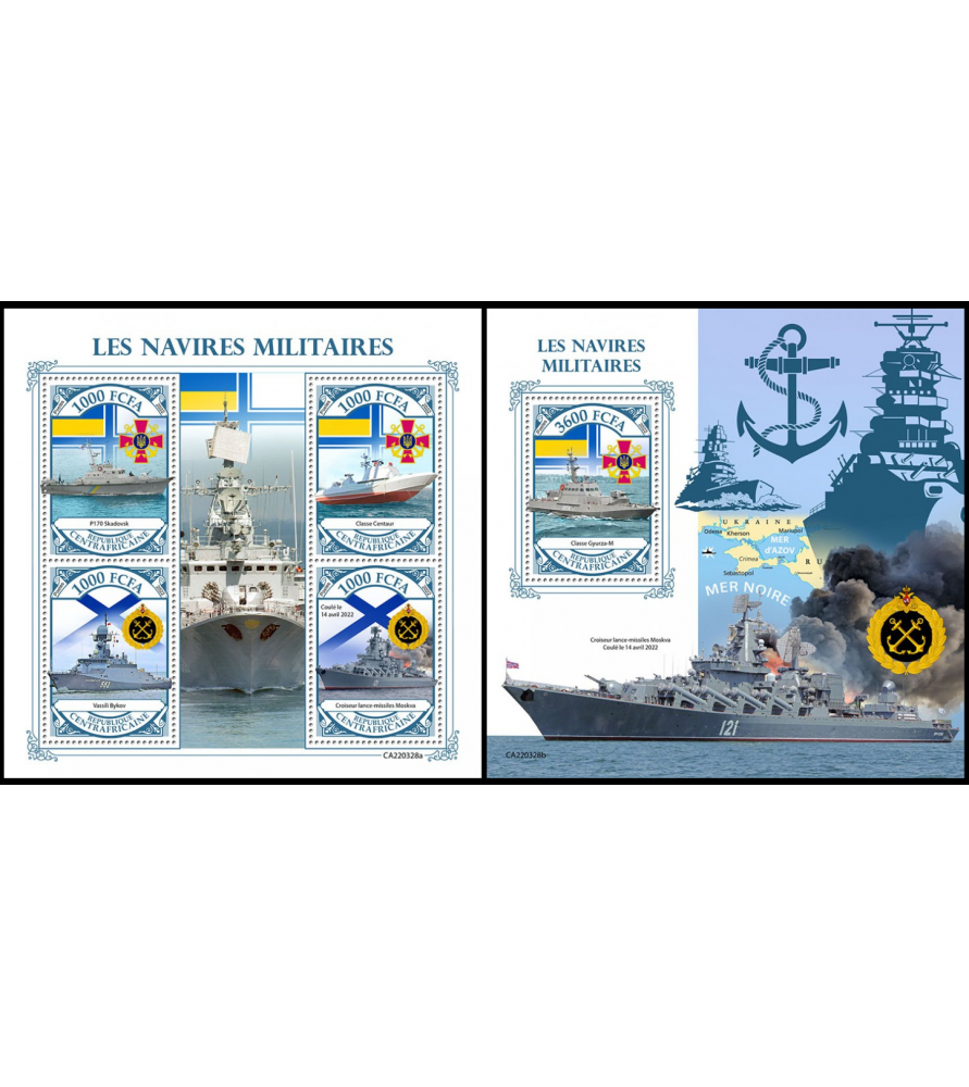 REPUBBLICA CENTRAFRICANA - 2022 - Navi militari Ucraina - minifoglio + foglietto (CA-22328)