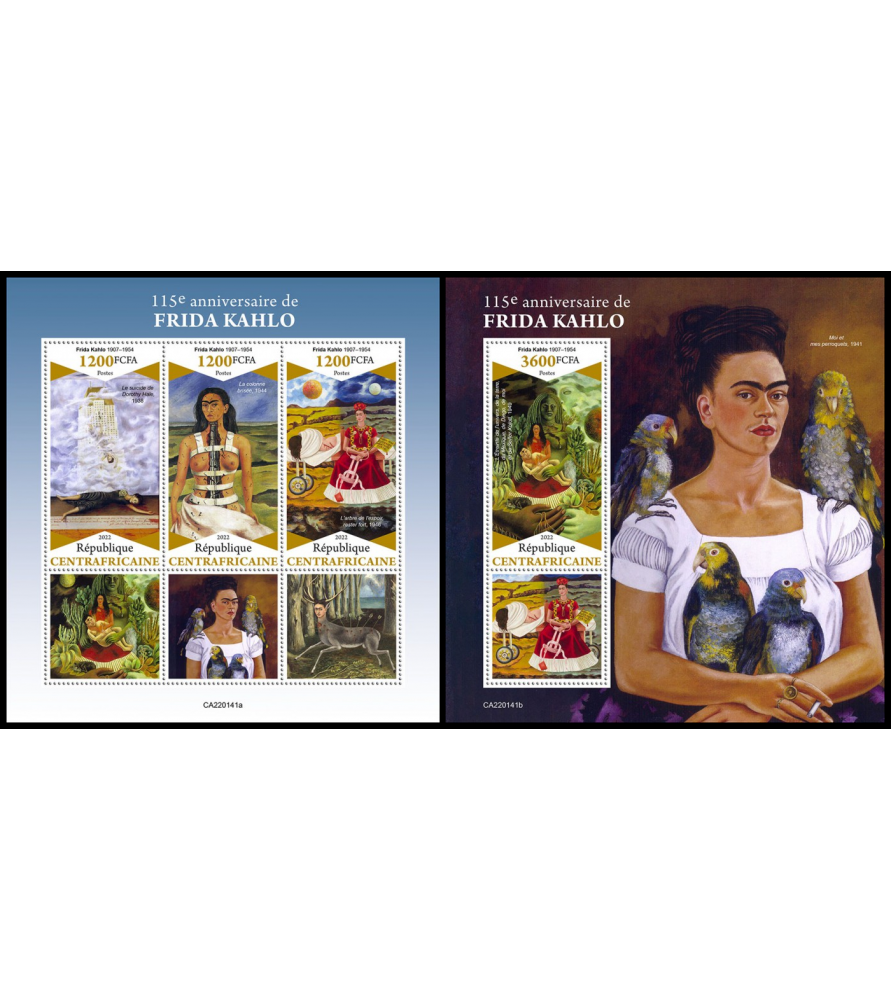 REPUBBLICA CENTRAFRICANA - 2022 - Frida Kahlo - minifoglio + foglietto (CA-22141)