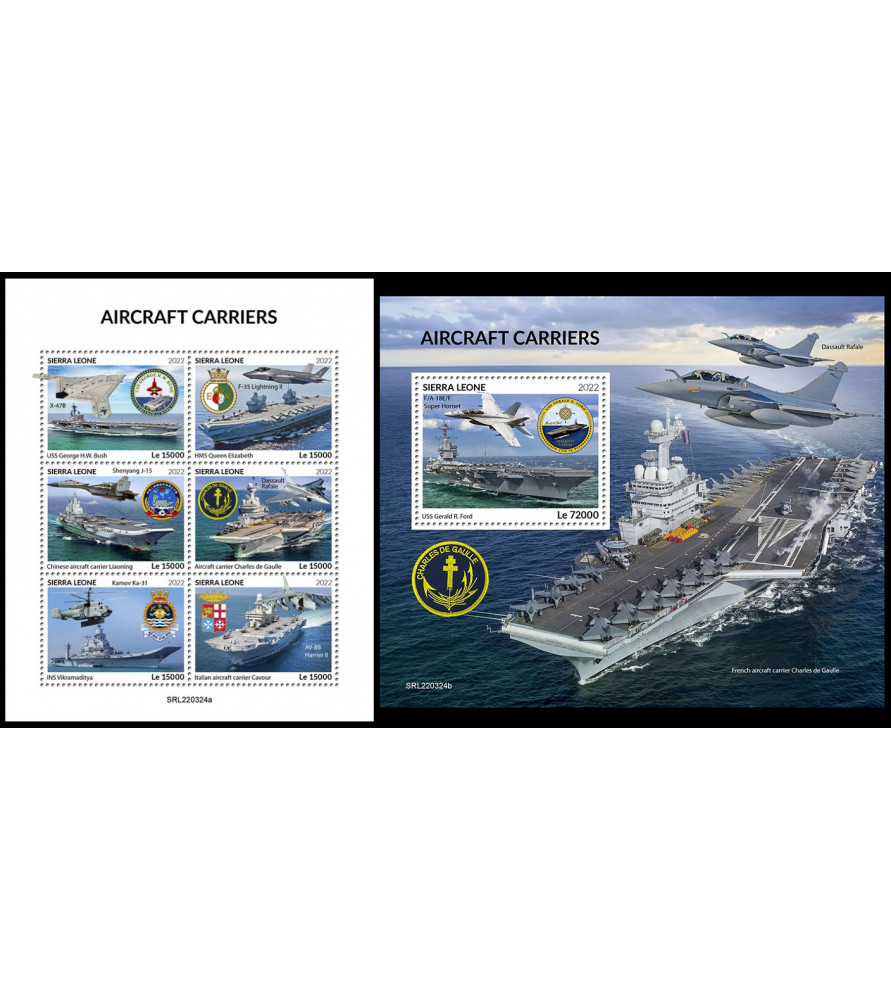 SIERRA LEONE - 2022 - Portaerei - minifoglio + foglietto (SL-22324)