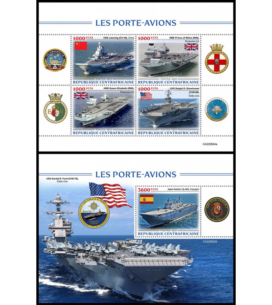 REPUBBLICA CENTRAFRICANA - 2022 - Portaerei - minifoglio + foglietto (CA-22624)