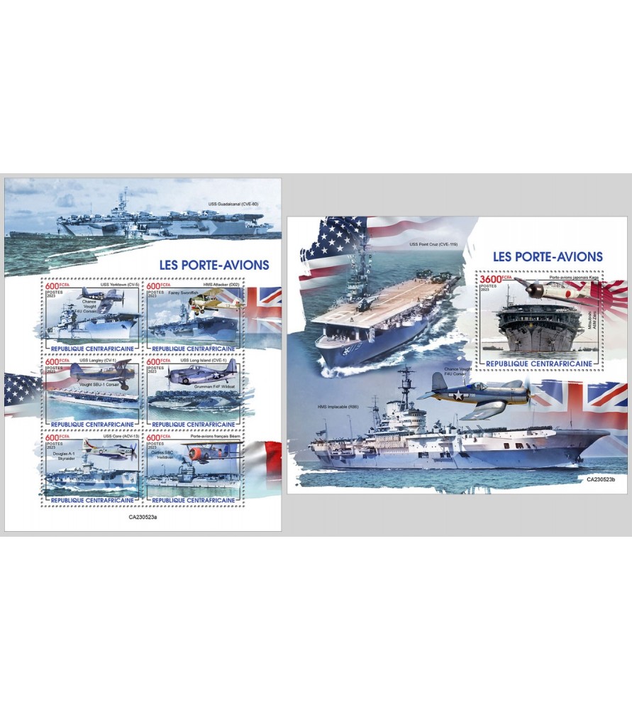 REPUBBLICA CENTRAFRICANA - 2023 - Portaerei - minifoglio + foglietto (CA-23523)