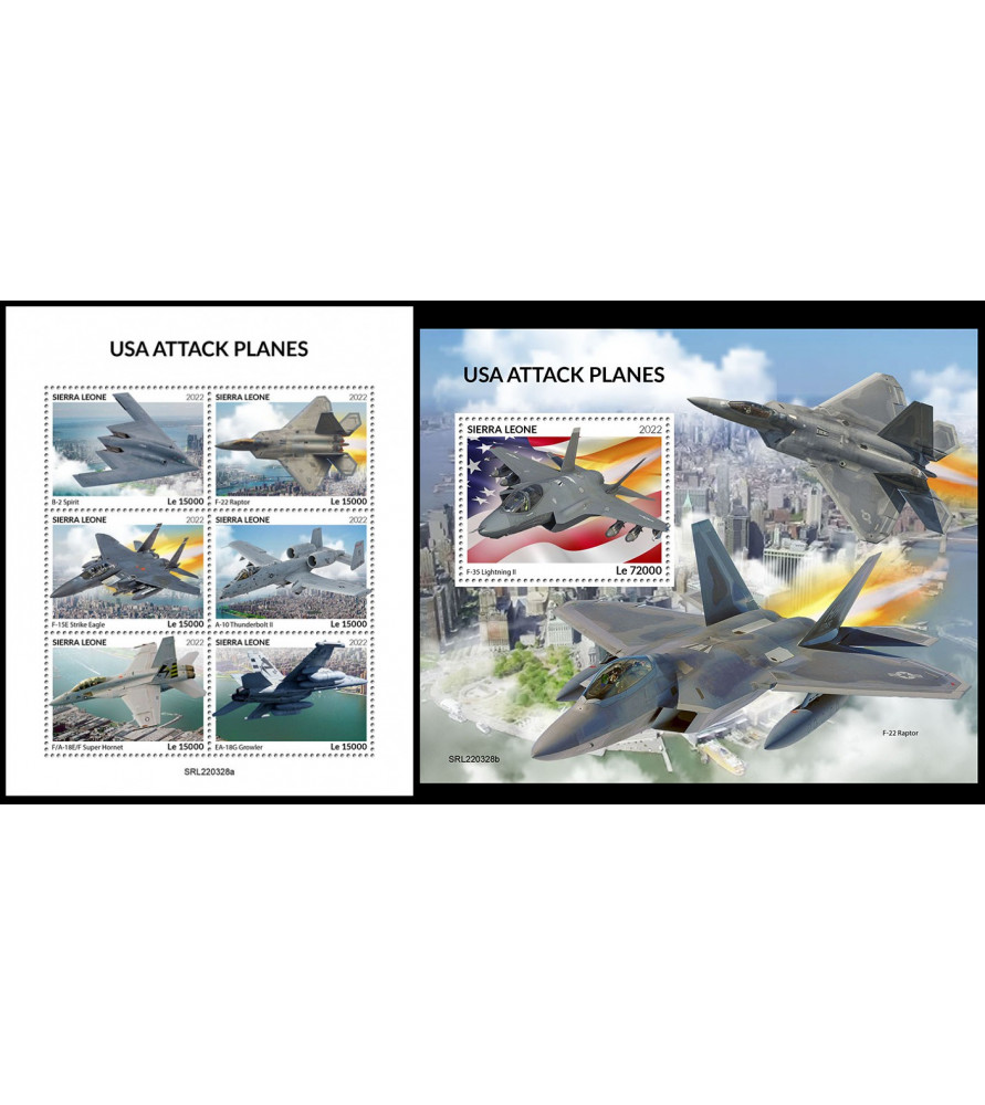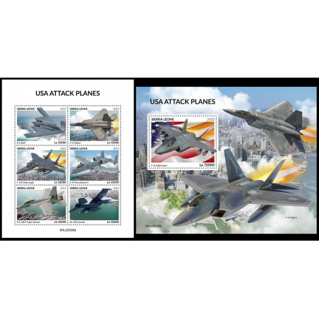 SIERRA LEONE - 2022 - Aerei militari americani - minifoglio + foglietto (SL-22328)