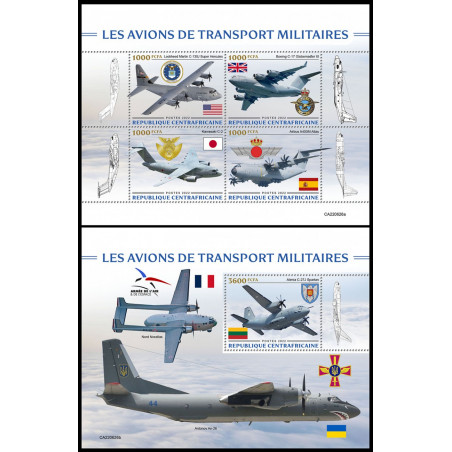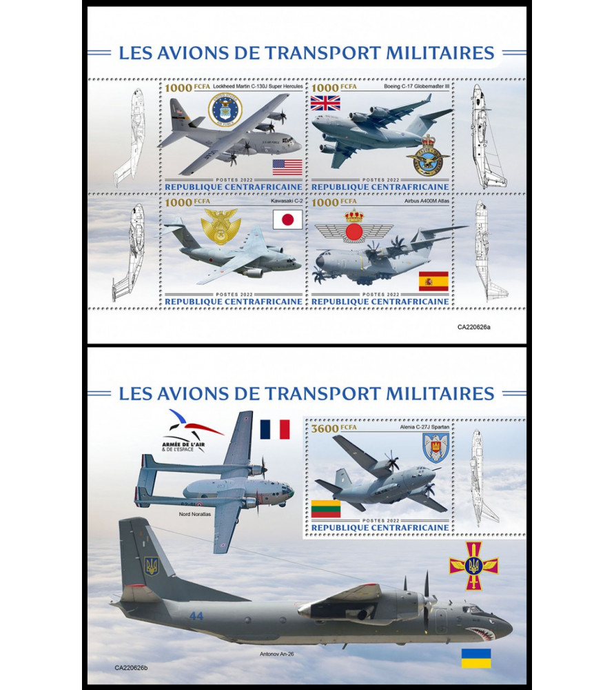 REPUBBLICA CENTRAFRICANA - 2022 - Aerei militari - minifoglio + foglietto (CA-22626)