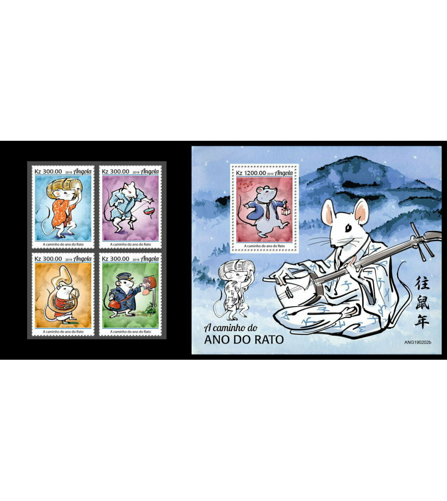 ANGOLA - 2019 - Anno lunare di ratto - seria+foglietto (AN-19202)