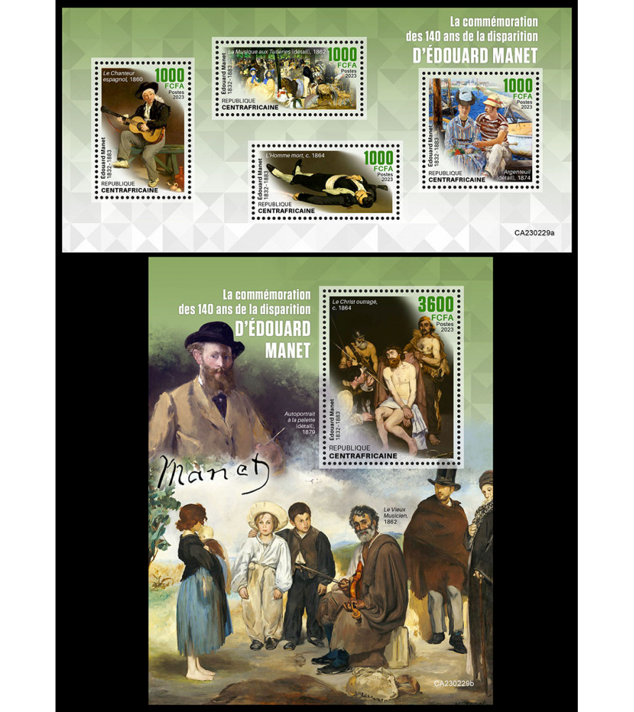 REPUBBLICA CENTRAFRICANA - 2023 - Edouard Manet - minifoglio + foglietto (CA-23229)