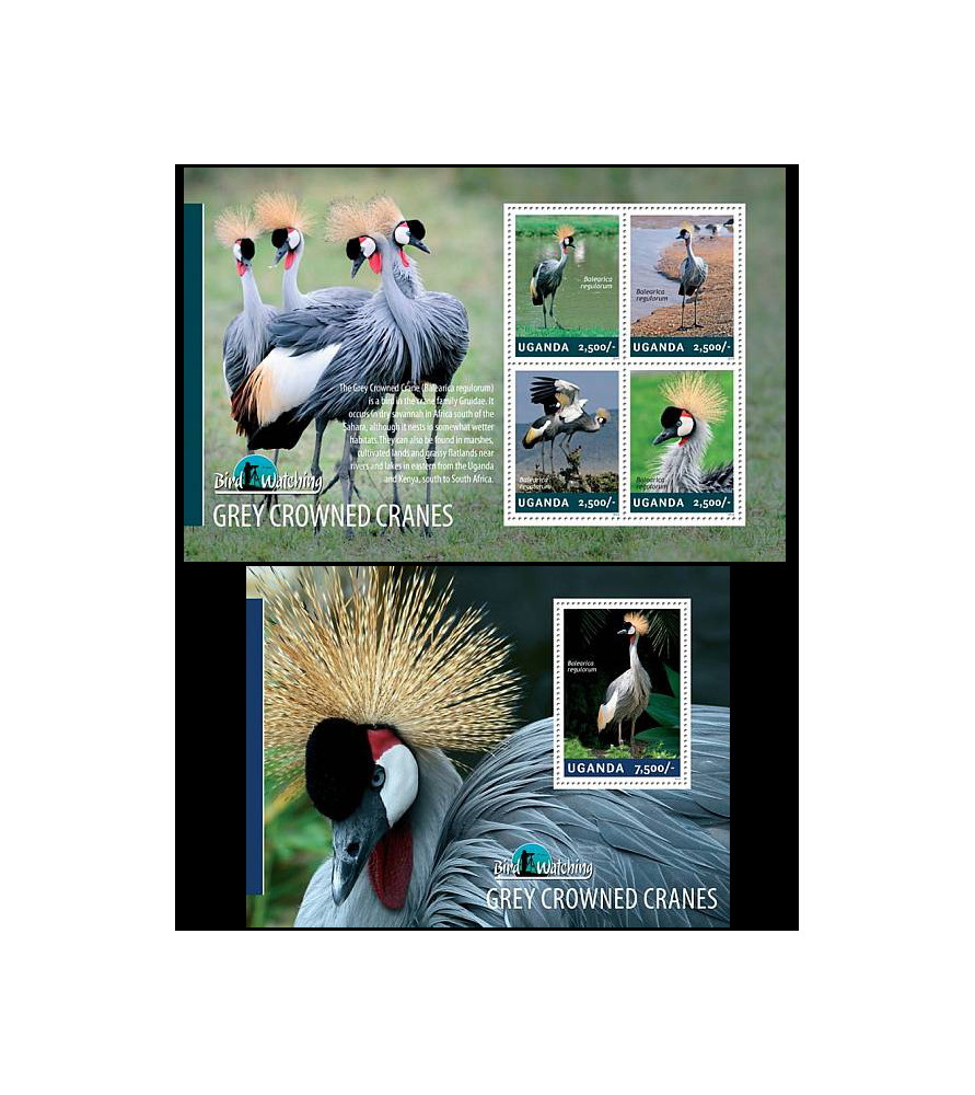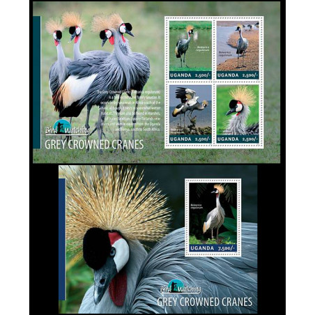 UGANDA - 2014 - Gru coronata grigia - minifoglio + foglietto (UG-14301)