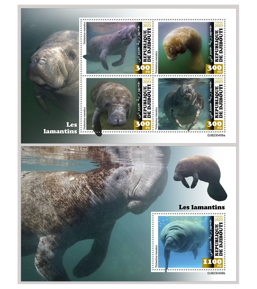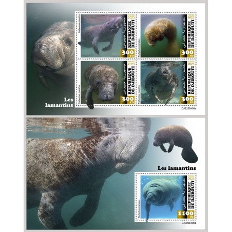 GIBUTI - 2023 - Lamantini - minifoglio + foglietto (DJ-23409)