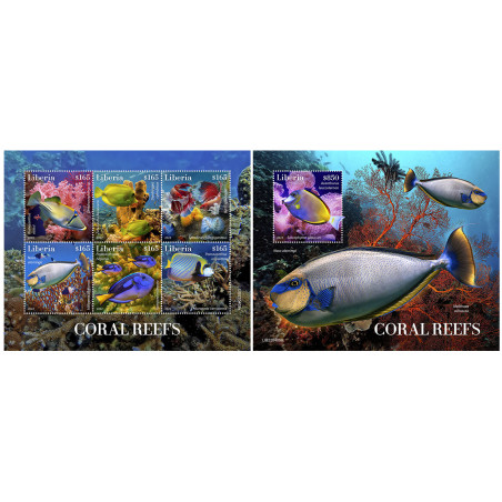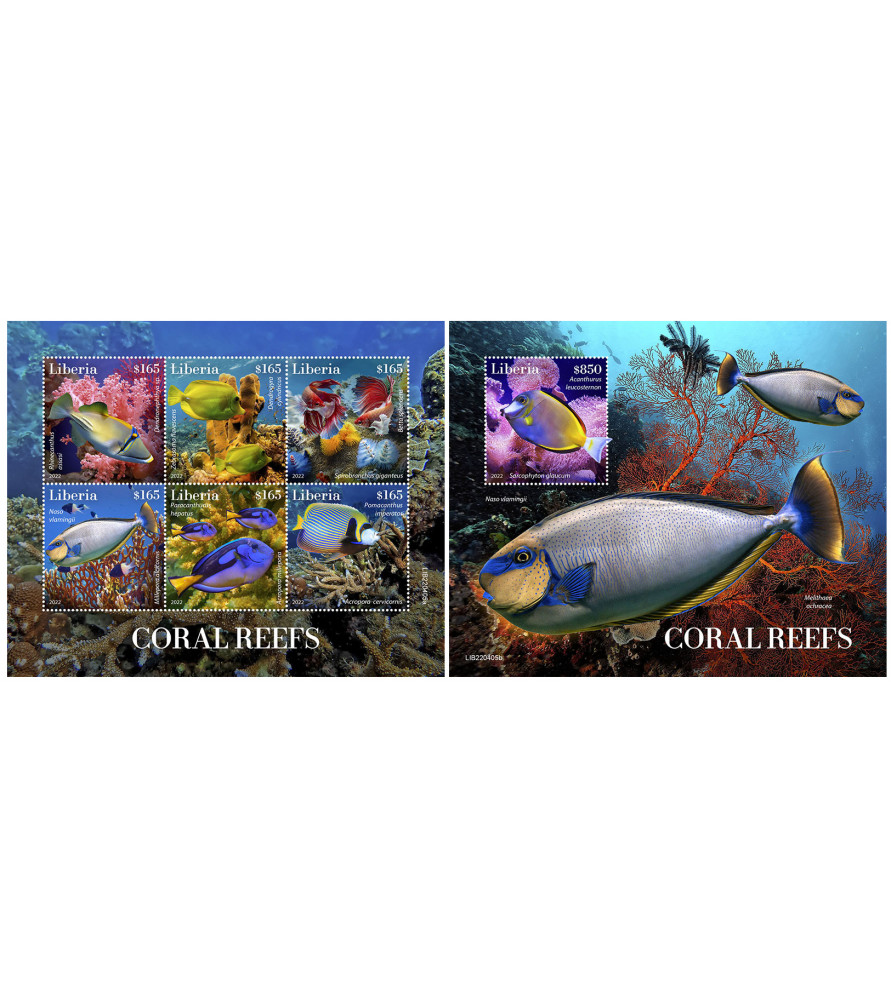 LIBERIA - 2022 - Barriera corallina, Pesci tropicali - minifoglio + foglietto (LR-22405)