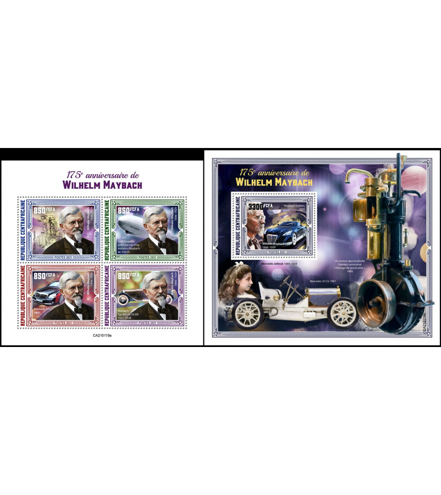 REPUBBLICA CENTRAFRICANA - 2021 - Wilhelm Maybach - minifoglio + foglietto (CA-21119)