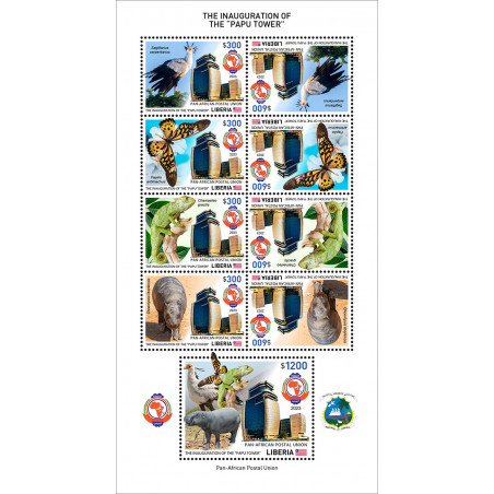 LIBERIA - 2023 - PAPU torre, animali - foglio combinato (LR-23304c)