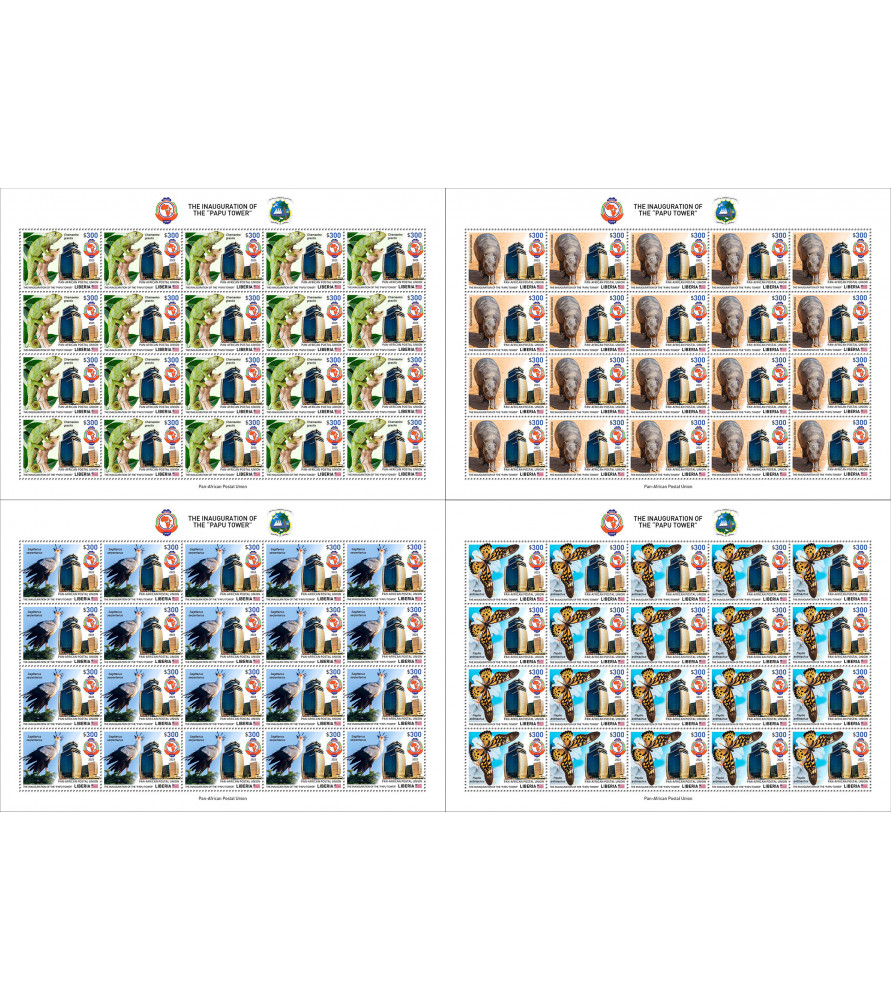 LIBERIA - 2023 - PAPU torre, animali - 4x foglio (LR-23304f)