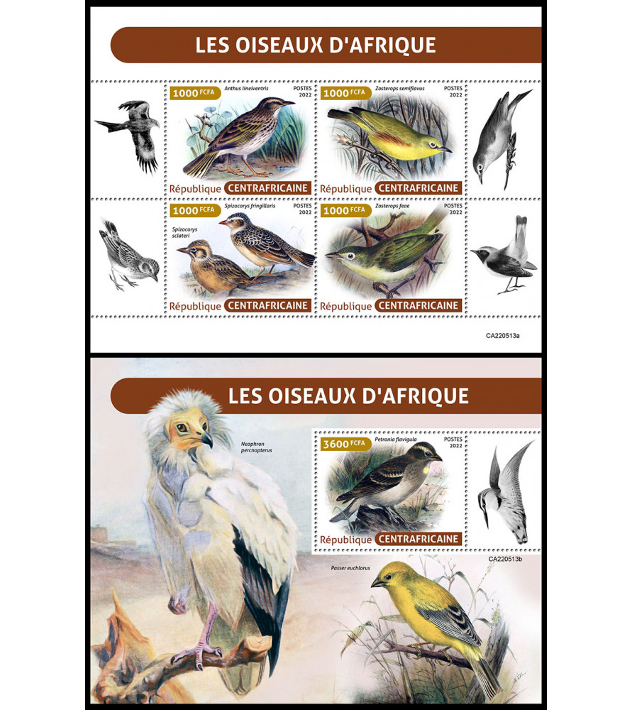REPUBBLICA CENTRAFRICANA - 2022 - Uccelli africani - minifoglio + foglietto (CA-22513)