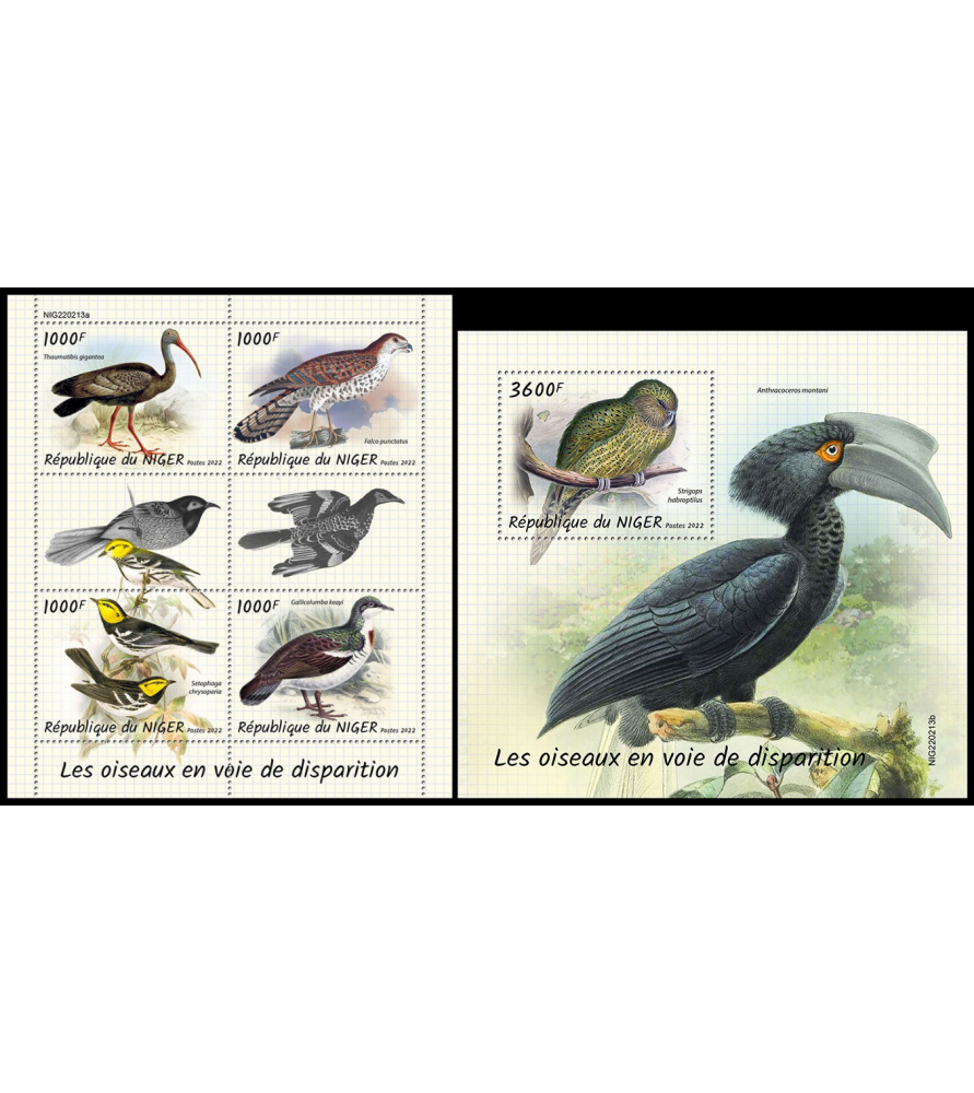 NIGER - 2022 - Uccelli in pericolo - minifoglio + foglietto (NE-22213)