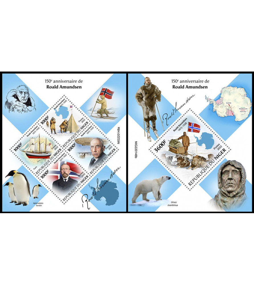 NIGER - 2022 - Roald Amundsen - minifoglio + foglietto (NE-22148)