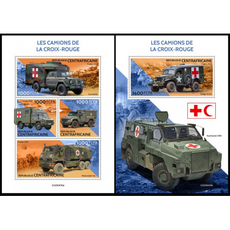 REPUBBLICA CENTRAFRICANA - 2022 - Ambulanze militari - minifoglio + foglietto (CA-22430)