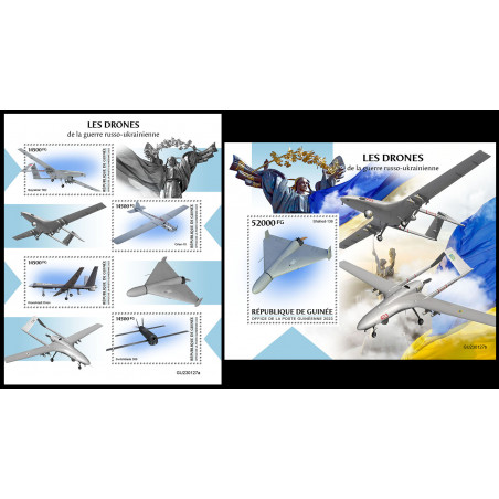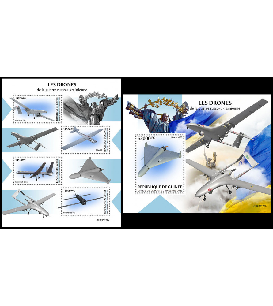GUINEA - 2023 - Droni da combattimento - minifoglio + foglietto (GU-23127)