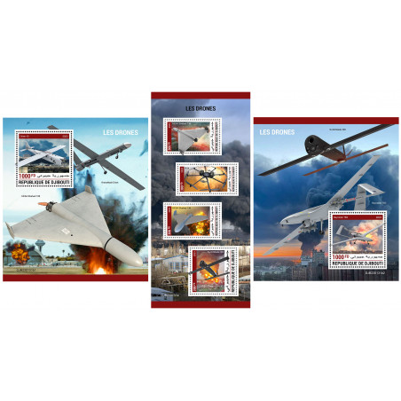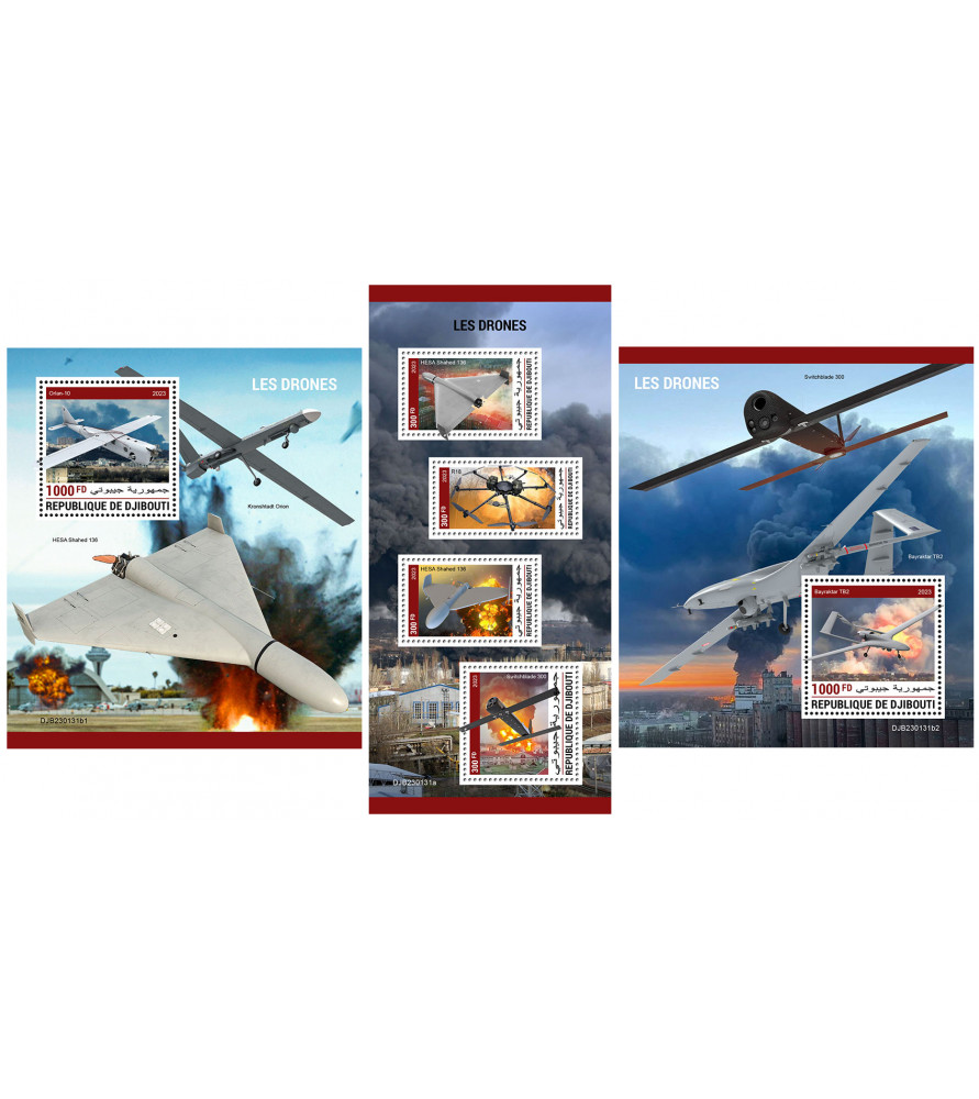 GIBUTI - 2023 - Droni da combattimento - minifoglio + 2x foglietto (DJ-23131)
