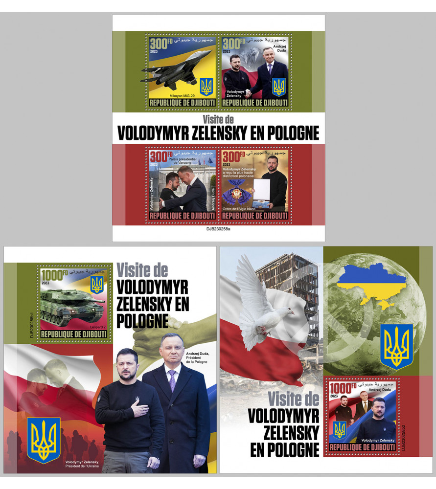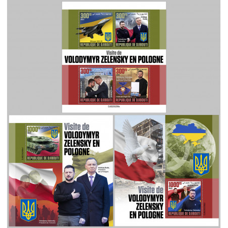 GIBUTI - 2023 - Volodymyr Zelenskyj visita Polonia - minifoglio + 2x foglietto (DJ-23258)