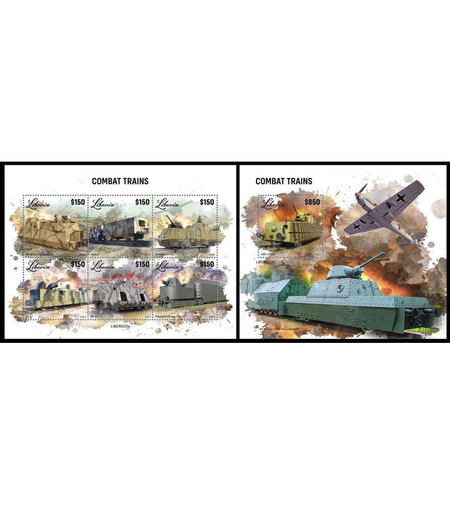 LIBERIA - 2023 - Treni blindati - minifoglio + foglietto (LR-23223)