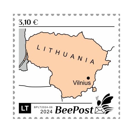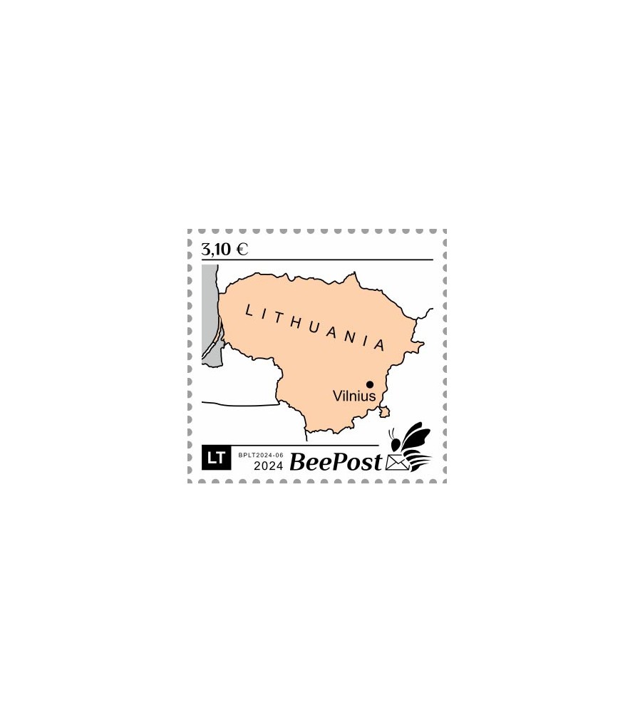 BEEPOST (LITUANIA) - 2024 - Mappa della Lituania - francobollo singolo (LT-24-06a)
