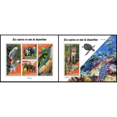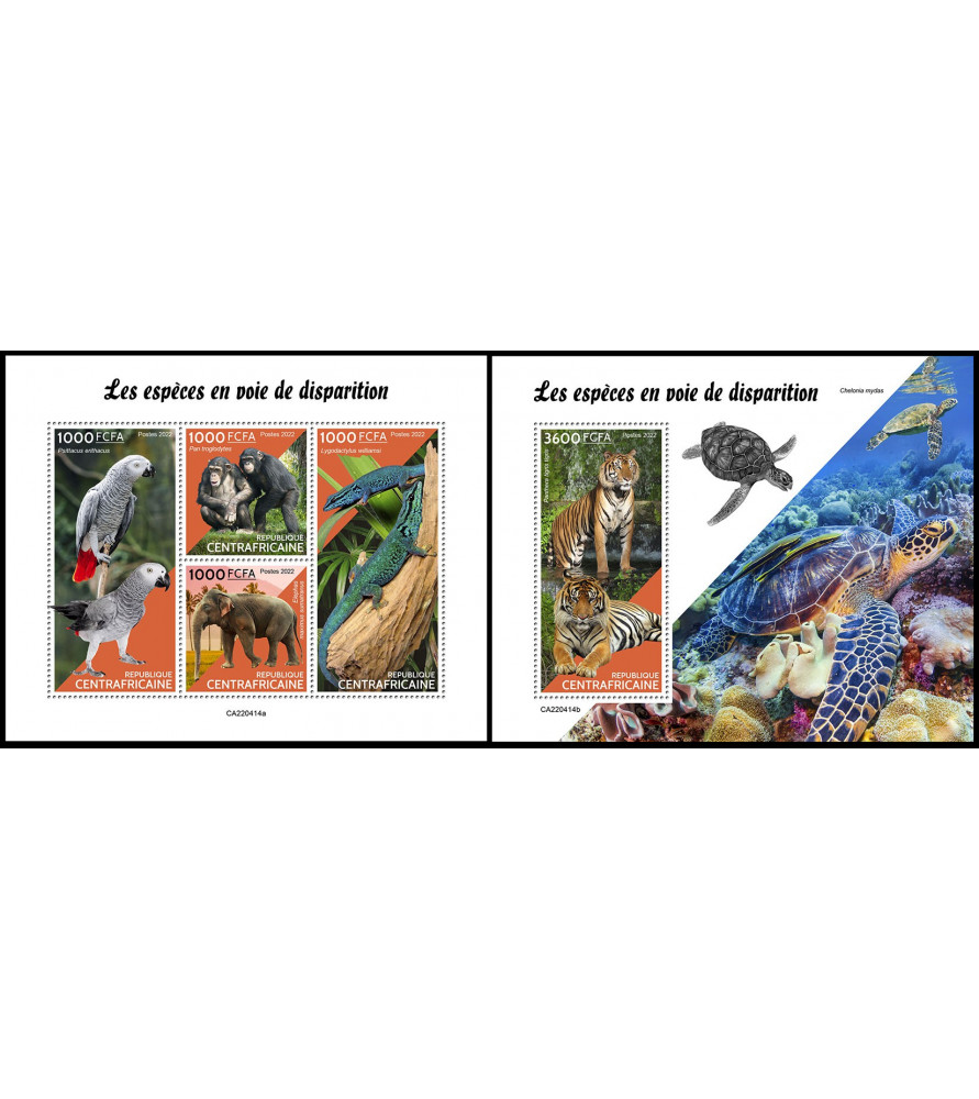REPUBBLICA CENTRAFRICANA - 2022 - Animali in pericolo - minifoglio + foglietto (CA-22414)