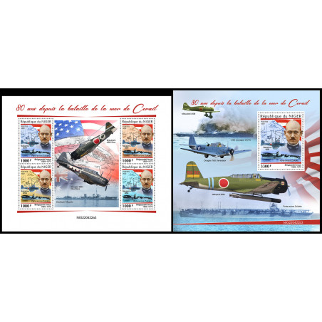 NIGER - 2022 - Bitka v Koralnem morju - mala pola + blok (NE-22422a3)