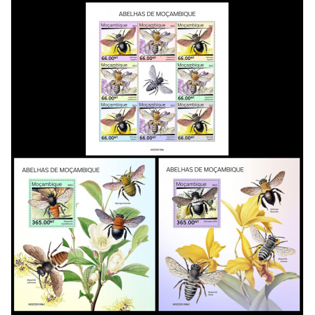 MOZAMBIK - 2022 - Čebele - mala pola + 2x blok (MZ-22108)