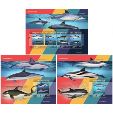 MOZAMBIK - 2022 - Delfini - mala pola + 2x blok (MZ-22207)